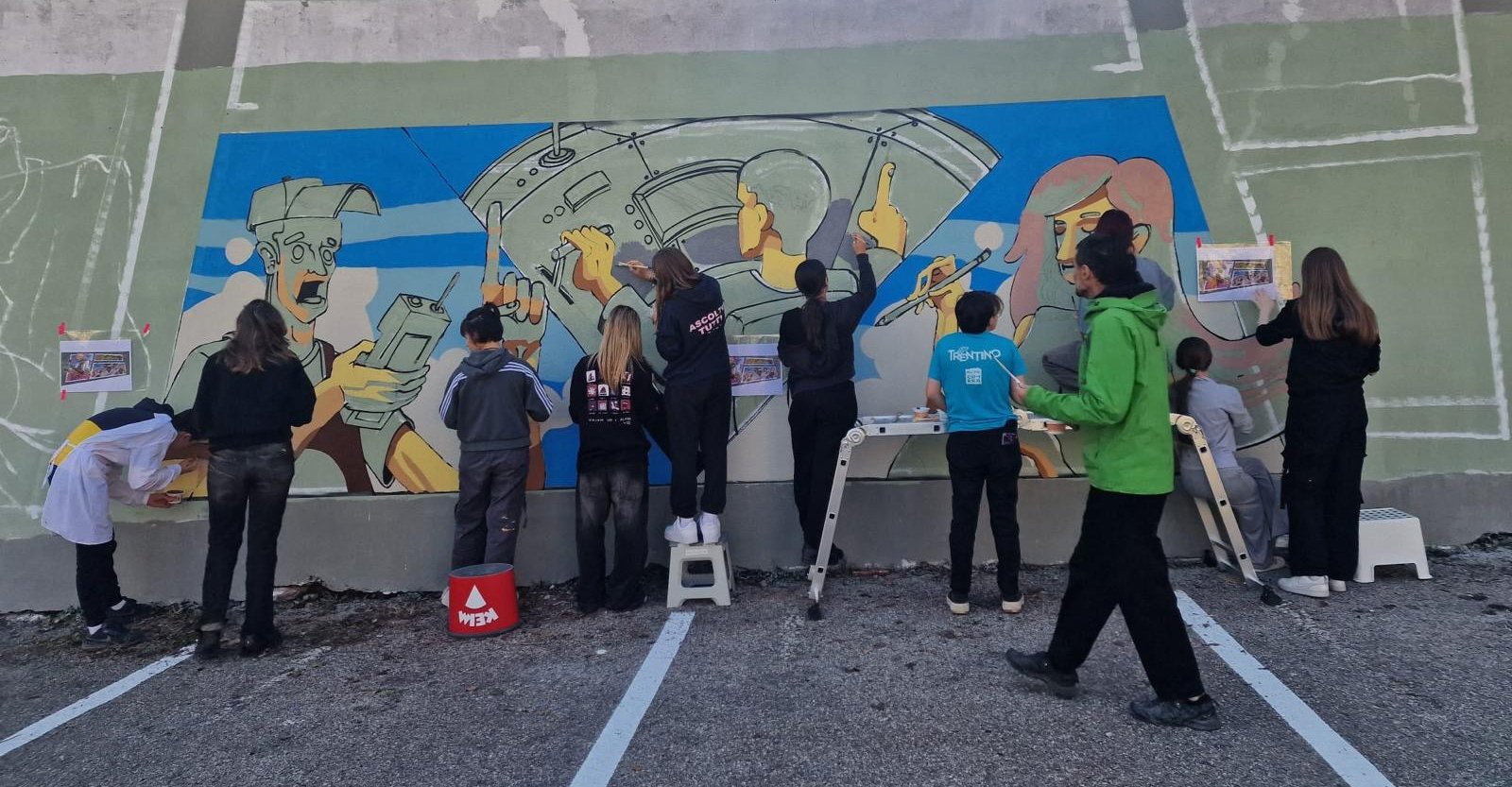 Design and coordination by Rayden Elodie, with artists Yorkone, Eech, Skugio and Ares, the Liceo Depero, and the associations Relab Video, We-Ink, ARGO and Rovereto Pazzeska.